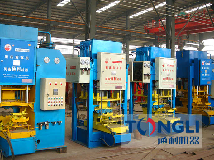 自1985年通利生产出台制瓦设备以来,相继推出余种制瓦机设备,满足客户的不同需求。2005年成功的MYWJ-125型水泥彩瓦机生产线。通利彩瓦机设备集机、电、液气于一体,在生产过程中给料、成型、脱模、推出部实行自动化,由于生产彩瓦工艺是吨位模 压成型,因此,制品成型美观,强度,抗渗性能,且防冻性能是其它瓦型无法比试的,已广泛应用于城市农村居民住宅,并被确定为先使用的新型建筑屋面材料。